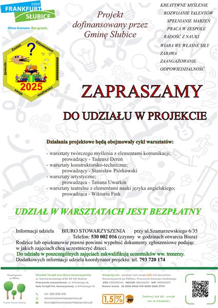 PROJEKT DOFINANSOWANY PRZEZ GMINĘ SŁUBICE!