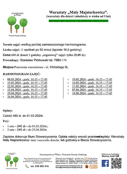 Rozpoczynamy nową edycję Małego Majsterkowicza. Szczegółowe informacje znajdują się w dołączonych dokumentach. Ilość miejsc jest ograniczona - decyduje kolejność zgłoszeń.